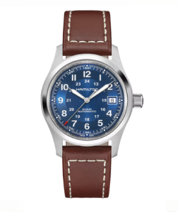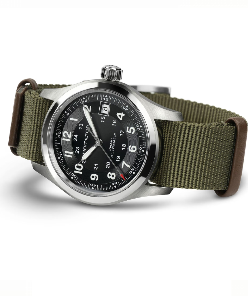 Caja de acero mate de 40 mm, tres agujas, esfera oscura con números claros luminiscentes, índices para las horas y los minutos, correa NATO o CUERO resistente: el nuevo Khaki Field Mechanical es una fiel representación del modelo original de la década de 1960 y del legado militar de Hamilton. Este modelo, de inspiración militar y construido para durar, es el reloj original de los soldados.