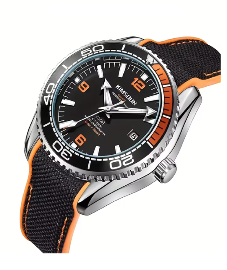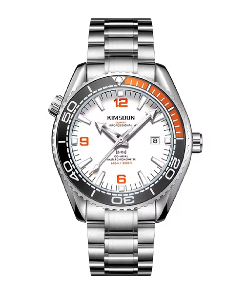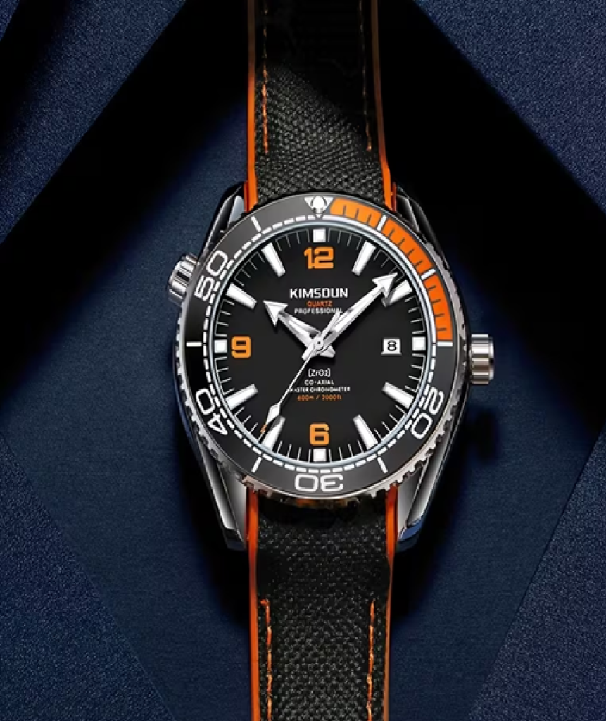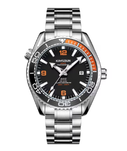 Uno de los mejores relojes submarinos japoneses, el KimSoun, despliega elegancia y versatilidad. Inspirada en los relojes del pasado, la nueva y espectacular estructura de la caja revela líneas más angulares y bordes más afinados. Además de ser más estilizados, estos relojes de acero noble también son más robustos, gracias al cristal de zafiro plano de la parte frontal y al refinamiento general de la caja y el bisel. El propio bisel es unidireccional y cuenta con un aro realizado en cerámica.