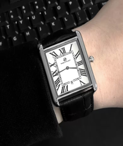 El reloj Tank, concebido por Louis Cartier en 1917, es un icono de la relojería moderna. Un reloj-pulsera cuyo diseño depurado, que alía geometría y exactitud de las proporciones, define su fuerte identidad.