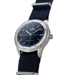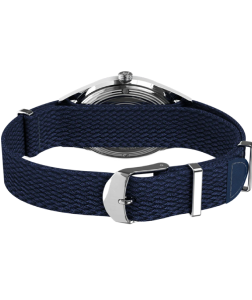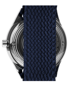 Para completar el look, hemos combinado el Marlin Jet con una correa de perlón tejido de doble capa negra, verde o azul que aporta un sutil toque de textura a su diseño limpio.